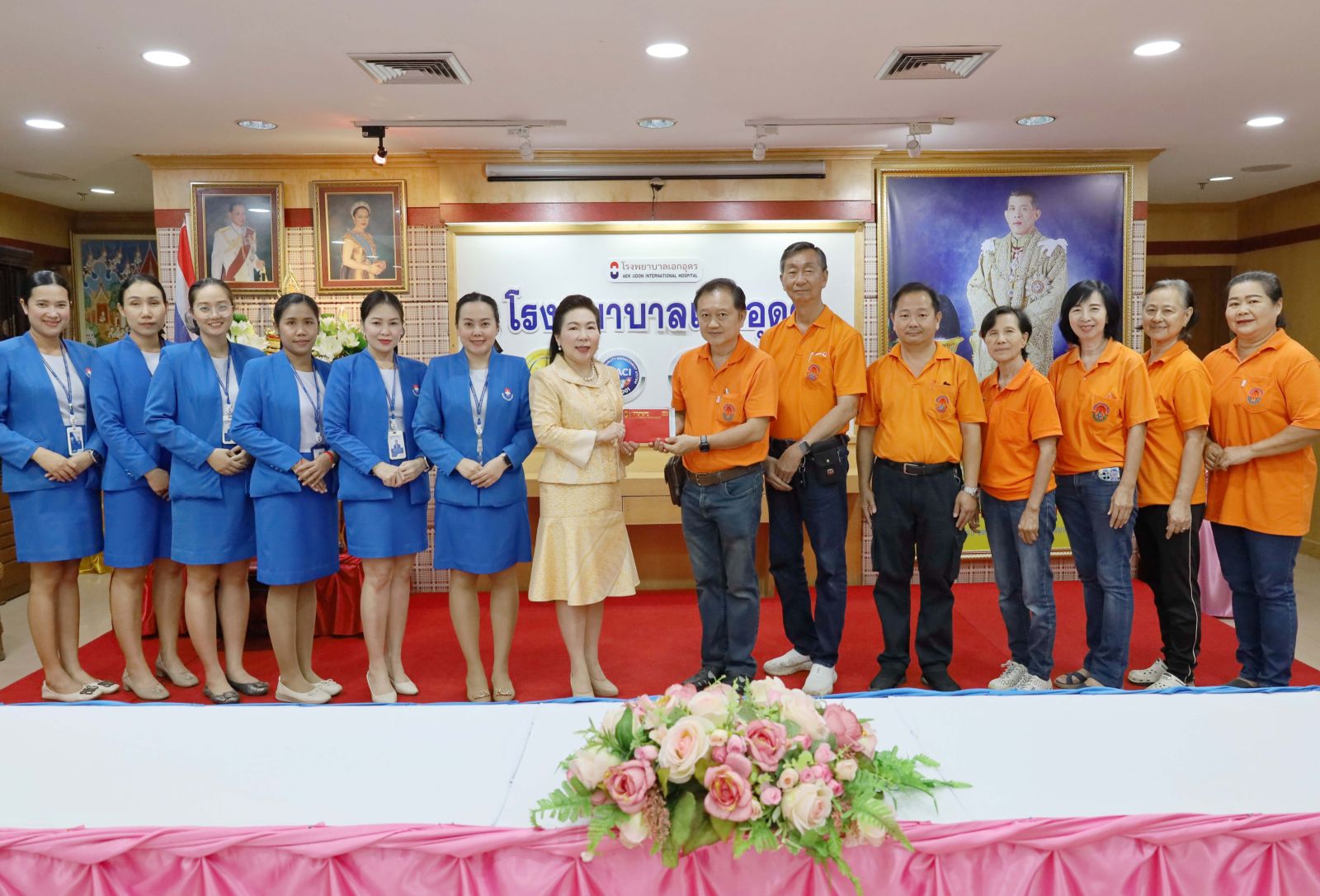 ดร.อรุณี ฉัตรไพฑูรย์ ผู้อำนวยการโรงพยาบาลเอกอุดร (ชุดสีเหลืองทอง) มอบเงินสนับสนุนงานประจำปีพิธีเฉลิมฉลองนมัสการองค์โป๊ยเซียนโจวซือ และวันคล้ายวันประสูติองค์พระแม่เจ้า (งานงิ้ว) มูลนิธิอุดรสว่างเมธาธรรมสถาน โดยมีท่านสถาพร ลิ้มมณีวิจิตร เหรัญญิกมูลนิธิอุดรสว่างเมธาธรรมสถาน และคณะ เป็นตัวแทนรับมอบ ณ ห้องประชุมใหญ่ชั้น 4 โรงพยาบาลเอกอุดร เมื่อวันที่ 25 กันยายน 2568