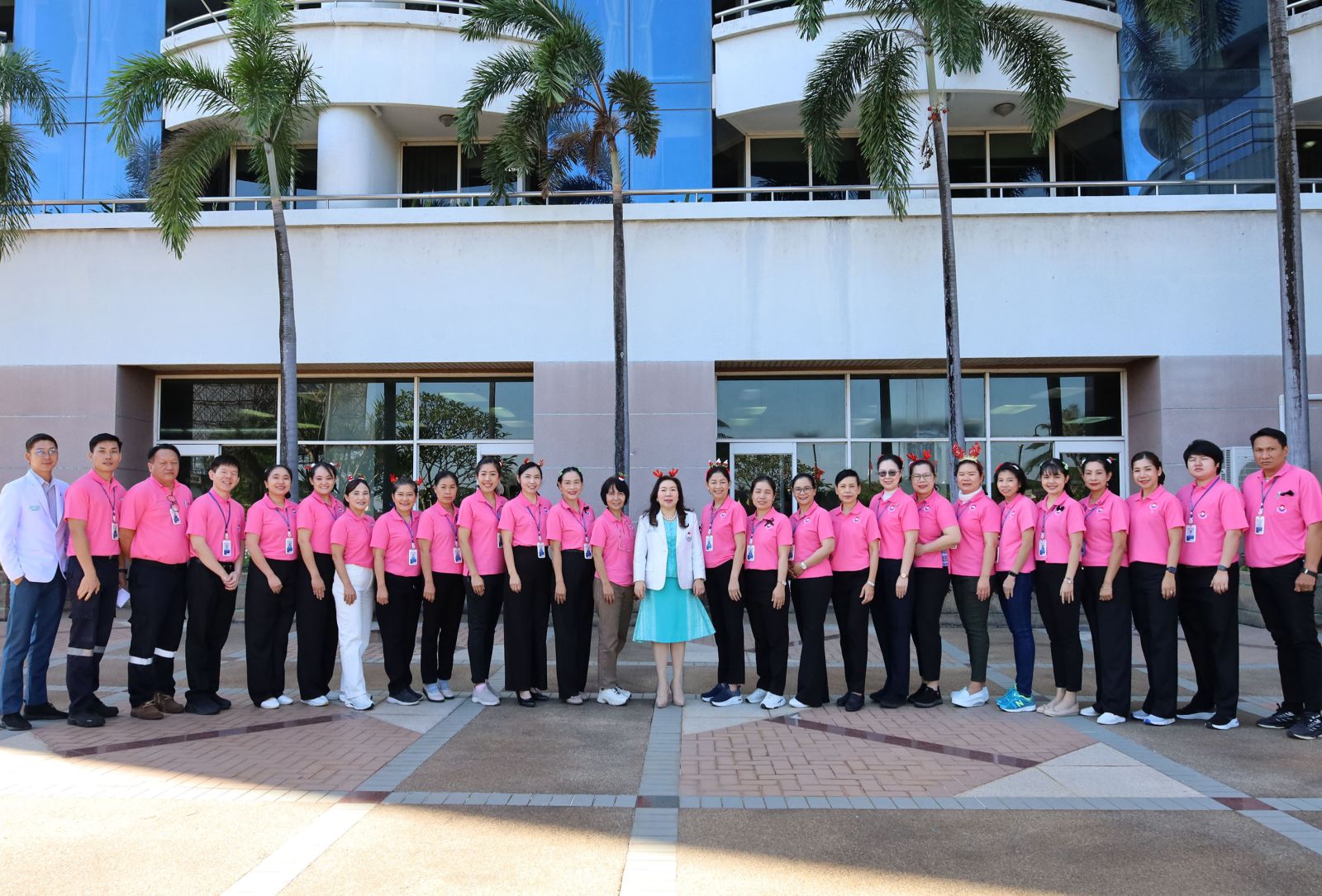 ดร.อรุณี ฉัตรไพฑูรย์ ผู้อำนวยการโรงพยาบาลเอกอุดร (คนกลาง) ร่วมถ่ายภาพกับคณะผู้จัดการ หัวหน้าแผนก และทีมสหวิชาชีพโรงพยาบาลเอกอุดร พร้อมเดินสำรวจตรวจสอบอาคาร ประจำปี 2568 และประชุมคณะกรรมการสิ่งแวดล้อม ความปลอดภัย และอาชีวอนามัยในโรงพยาบาล Facility Management and Safety and Environment Committee (FMSEC) เพื่อการพัฒนาคุณภาพบริการอย่างต่อเนื่อง ณ โรงพยาบาลเอกอุดร เมื่อวันที่ 26 ธันวาคม 2568