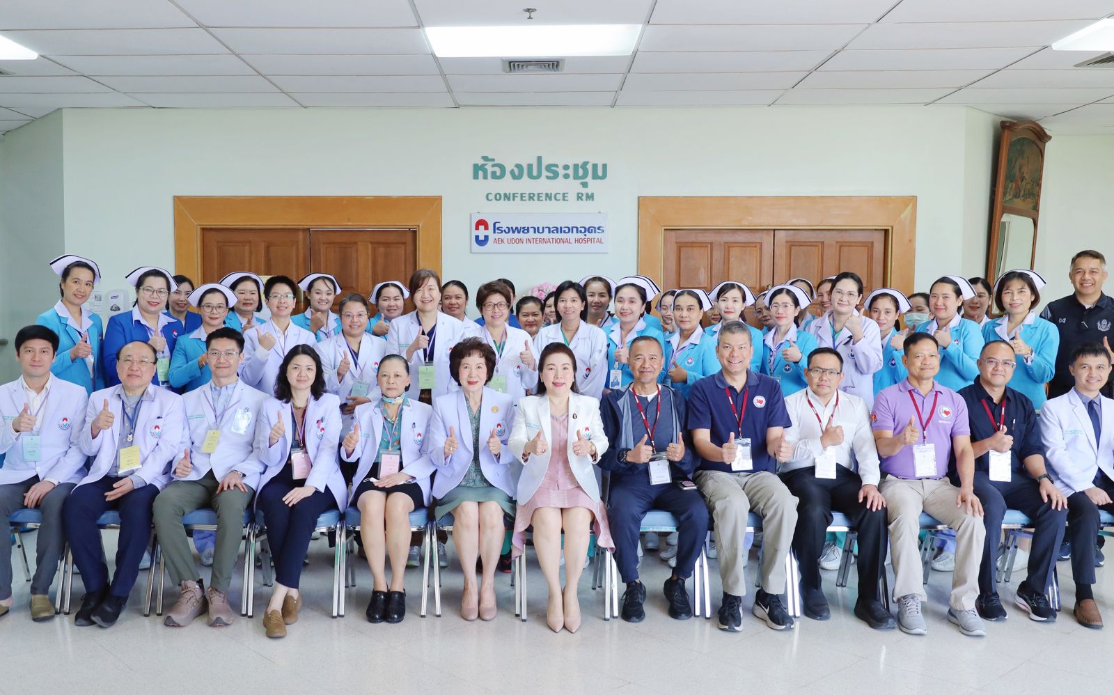 ทพญ.วารุณี ฉัตรไพฑูรย์ รองประธานกรรมการการแพทย์ (แถวนั่งคนที่ 6 จากซ้าย) , ดร.อรุณี ฉัตรไพฑูรย์ผู้อำนวยการโรงพยาบาลเอกอุดร/รองประธานกรรมการบริหาร (แถวนั่งคนที่ 7 จากซ้าย) เป็นประธานเปิดโครงการอบรมเชิงปฏิบัติการ การช่วยชีวิตขั้นสูง (ACLS) ประจำปี 2569 เพื่อพัฒนาศักยภาพ เพิ่มพูนความรู้ และเพื่อความปลอดภัยสูงสุดของผู้รับบริการและบุคลากร ซึ่งมีจำนวน 2 รุ่น ณ ห้องประชุมใหญ่ชั้น 4 โรงพยาบาลเอกอุดร เมื่อวันที่ 5-6 กุมภาพันธ์ 2569