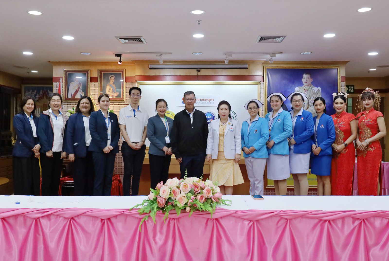 ดร.อรุณี ฉัตรไพฑูรย์ ผู้อำนวยการโรงพยาบาลเอกอุดร (สูทขาว) และคณะ ให้เกียรติถ่ายภาพ และร่วมพูดคุยกับนพ.สุนทร ศรีทา CEO/ผู้อำนวยการโรงพยาบาลรวมใจรักษ์และคณะ ในโอกาสที่โรงพยาบาลรวมใจรักษ์ นำเสนอศักยภาพการรักษาผู้ป่วยรวมถึงแนวทางการส่งต่อผู้ป่วยโรคมะเร็ง การผ่าตัดเพิ่มส่วนสูงฯ ณ โรงพยาบาลเอกอุดร เมื่อวันที่ 20 กุมภาพันธ์ 2569