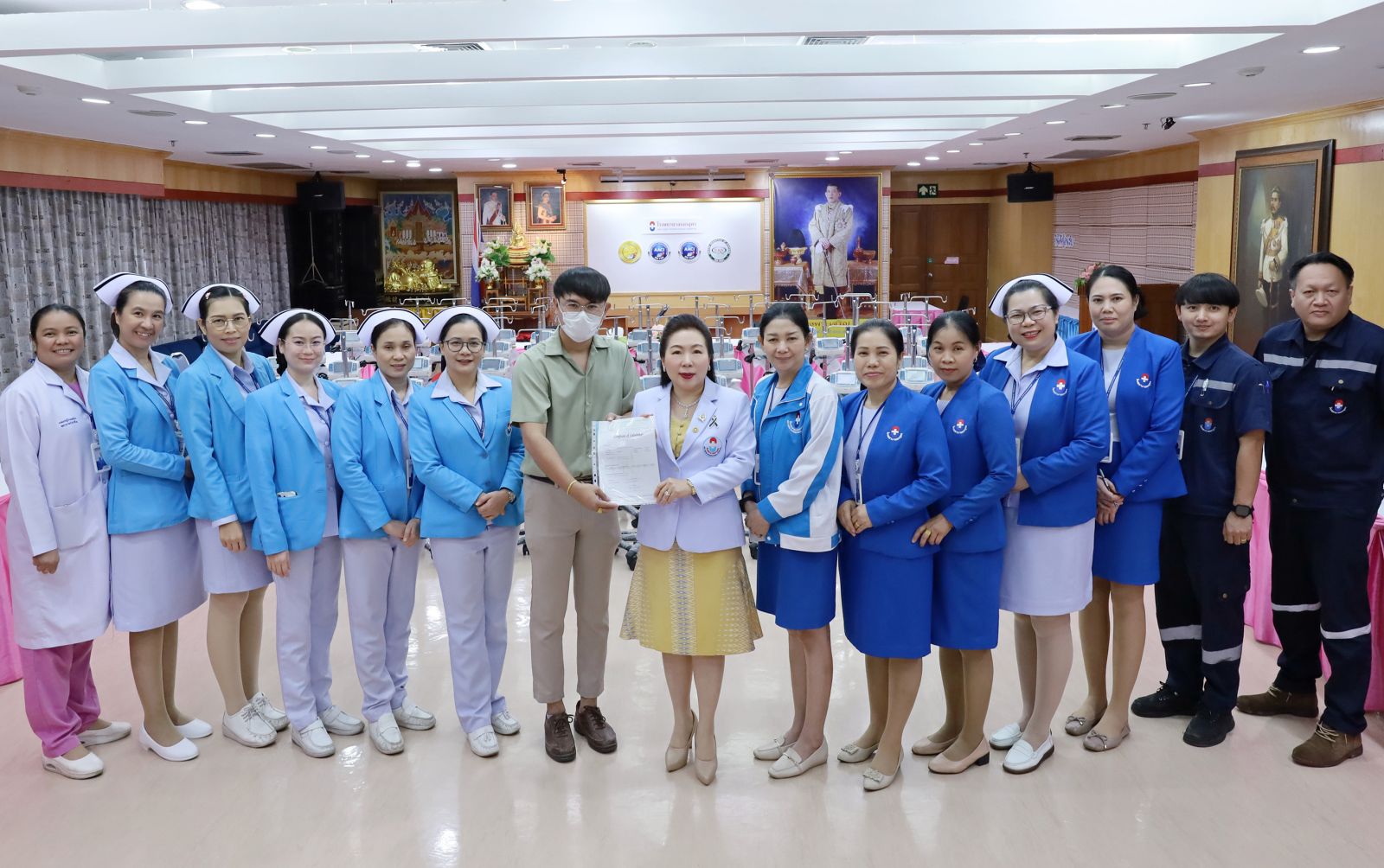 ดร.อรุณี ฉัตรไพฑูรย์ ผู้อำนวยการโรงพยาบาลเอกอุดร (คนกลาง) และคณะตรวจรับเครื่องควบคุมการให้สารละลายทางหลอดเลือดดำ ยี่ห้อ MedRena รุ่น VP50 Pro จำนวน 50 เครื่อง จากบริษัท เก้าสยามเมดิคอล จำกัด ณ โรงพยาบาลเอกอุดร เมื่อวันที่ 26 กุมภาพันธ์ 2569