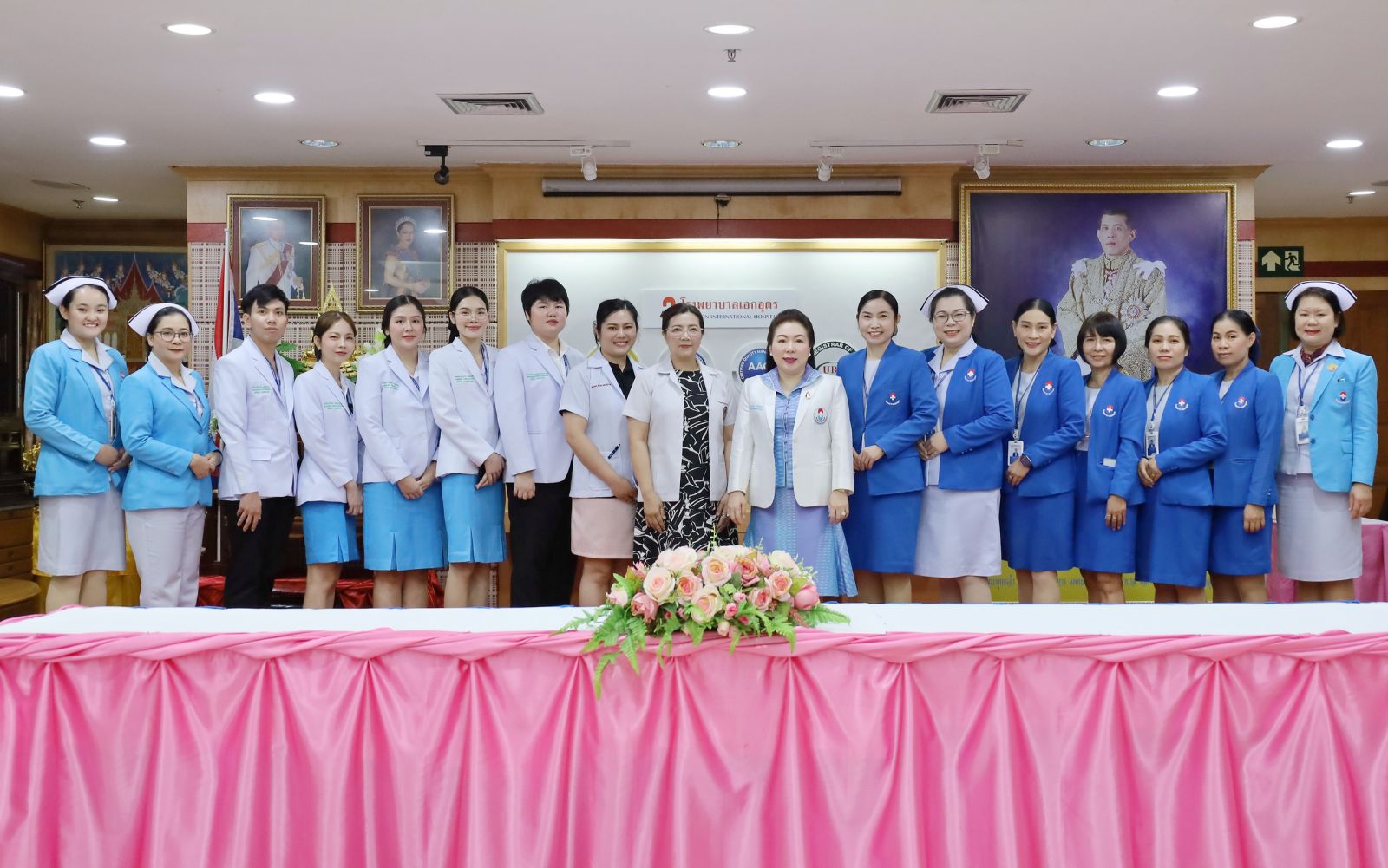 ดร.อรุณี ฉัตรไพฑูรย์ ผู้อำนวยการโรงพยาบาลเอกอุดร (สูทขาวชุดฟ้า) และคณะ ให้เกียรติถ่ายภาพ และเปิดการประชุมการตรวจติดตามระบบคุณภาพภายใน มาตรฐานงานเทคนิคการแพทย์ 2565 โดยมี ทนพญ.จิรายุส ผาผ่อง นักเทคนิคการแพทย์ชำนาญการพิเศษ โรงพยาบาลกุมภวาปี (คนที่ 9 จากซ้าย) และ ทนพญ.ปนัดดา ชัยประโคม นักเทคนิคการแพทย์ปฏิบัติการ โรงพยาบาลกุมภวาปี (คนที่ 8 จากซ้าย) เป็นผู้ตรวจติดตาม ณ โรงพยาบาลเอกอุดร เมื่อวันที่ 6 มีนาคม 2569