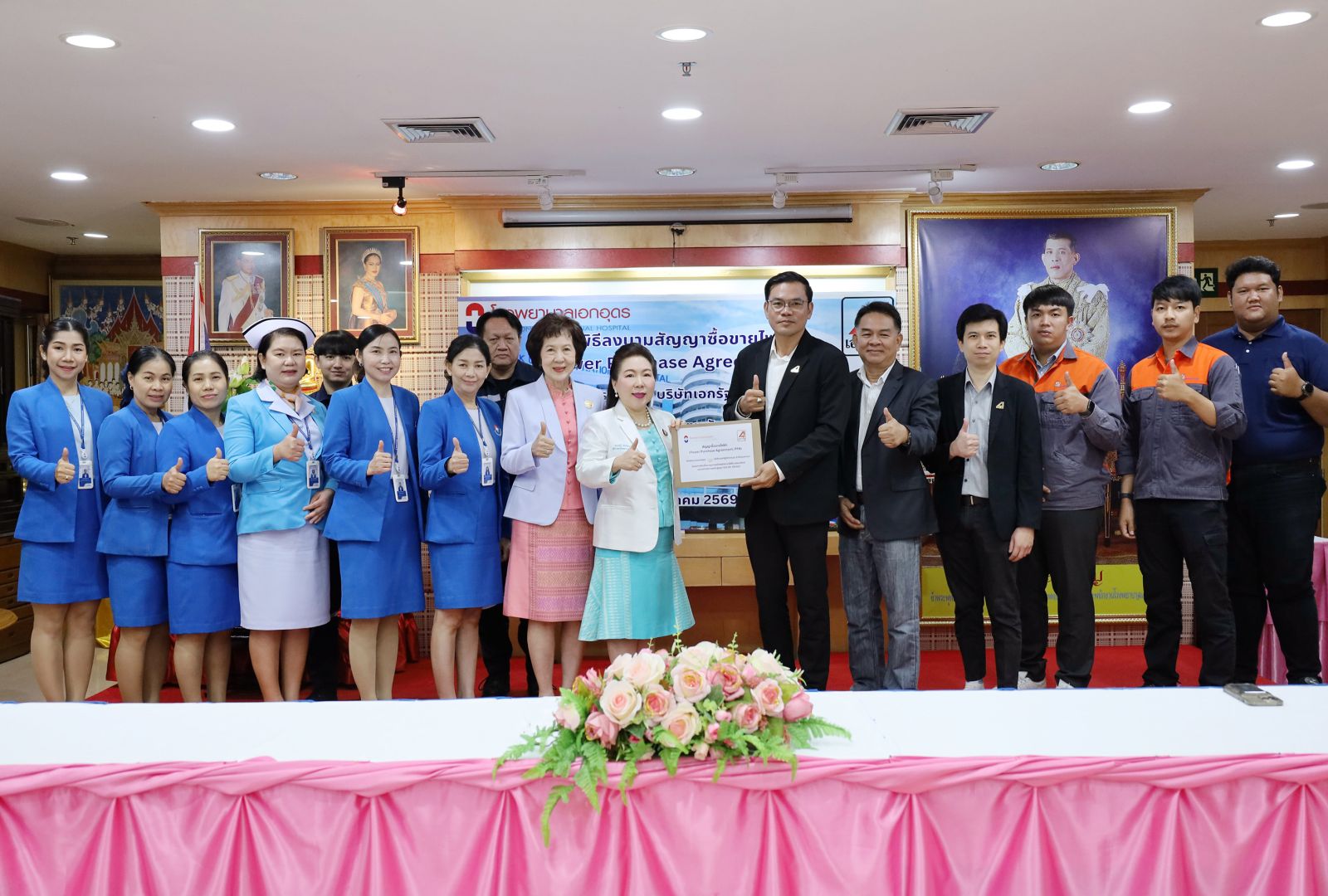 ทพญ.วารุณี ฉัตรไพฑูรย์ รองประธานกรรมการการแพทย์ (สูทขาวชุดชมพู) และ ดร.อรุณี ฉัตรไพฑูรย์ ผู้อำนวยการโรงพยาบาลเอกอุดร/รองประธานกรรมการบริหาร (สูทขาวชุดฟ้า) ร่วมลงนามพิธีลงนามสัญญาซื้อขายไฟฟ้า (Power Purchase Agreement; PPA) โดยโรงพยาบาลเอกอุดร และ บริษัท เอกรัฐวิศวกรรม จำกัด (มหาชน) ร่วมดำเนินโครงการติดตั้งระบบการผลิตพลังงานไฟฟ้าแสงอาทิตย์ ขนาดกำลังการผลิตสูงสุด 533.39 กิโลวัตต์ มุ่งสู่การเป็น “โรงพยาบาลสีเขียว” (Green Hospital) เพื่ออนุรักษ์ทรัพยากรธรรมชาติและสิ่งแวดล้อมโลกอย่างยั่งยืน ณ ห้องประชุมใหญ่ 4 โรงพยาบาลเอกอุดร เมื่อวันที่ 19 มีนาคม 2569