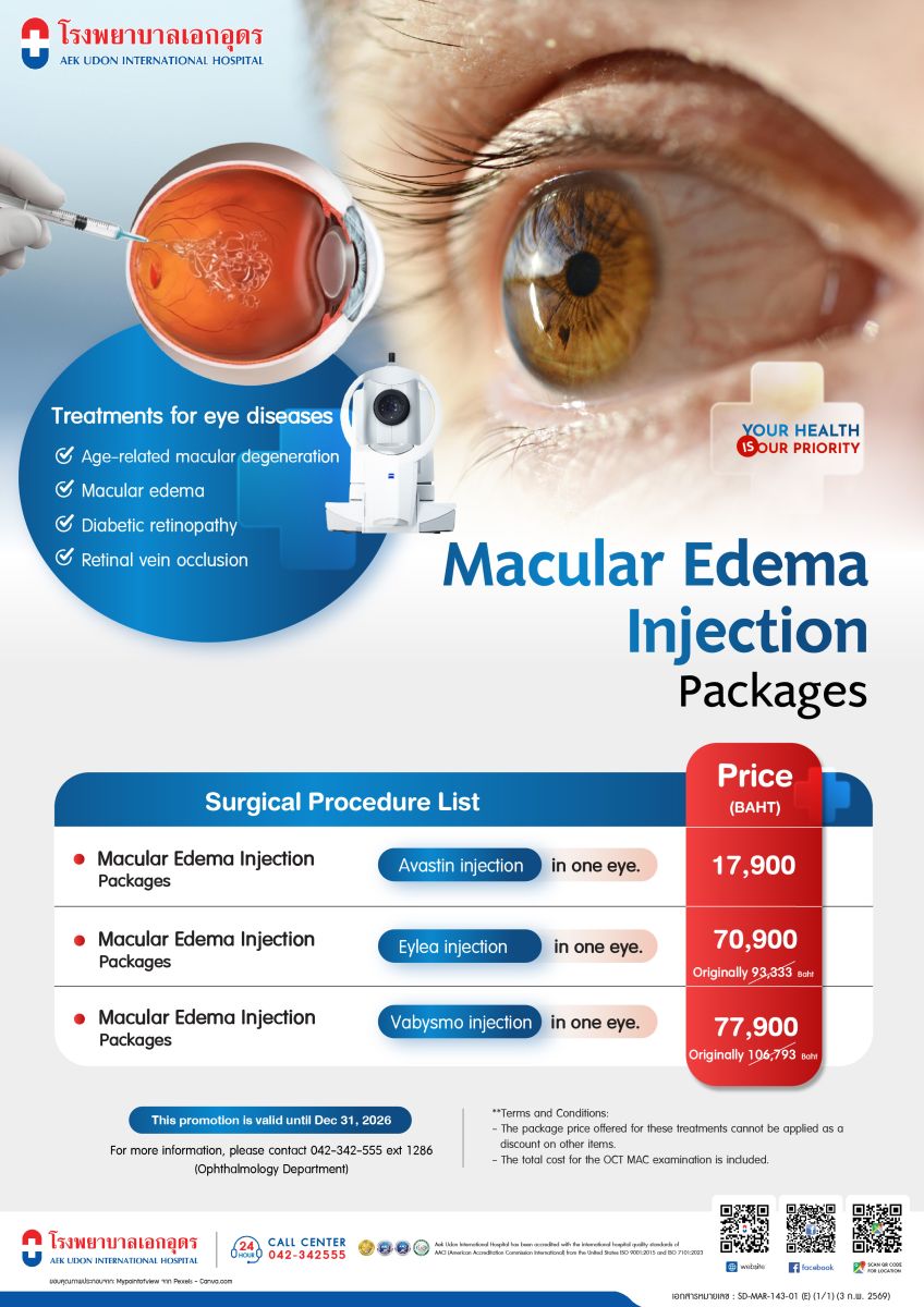 แพ็คเกจฉีดยาเข้าวุ้นตา เพื่อรักษาภาวะจอประสาทตาบวม