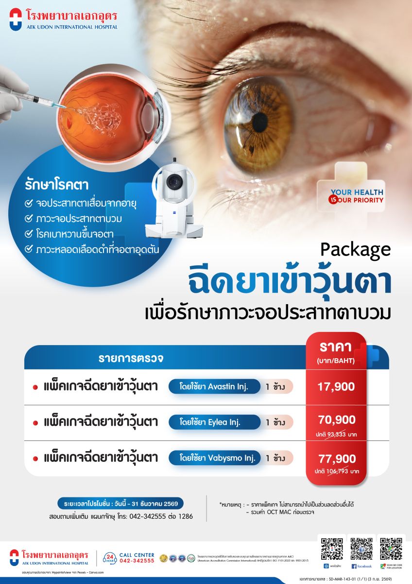 แพ็คเกจฉีดยาเข้าวุ้นตา เพื่อรักษาภาวะจอประสาทตาบวม