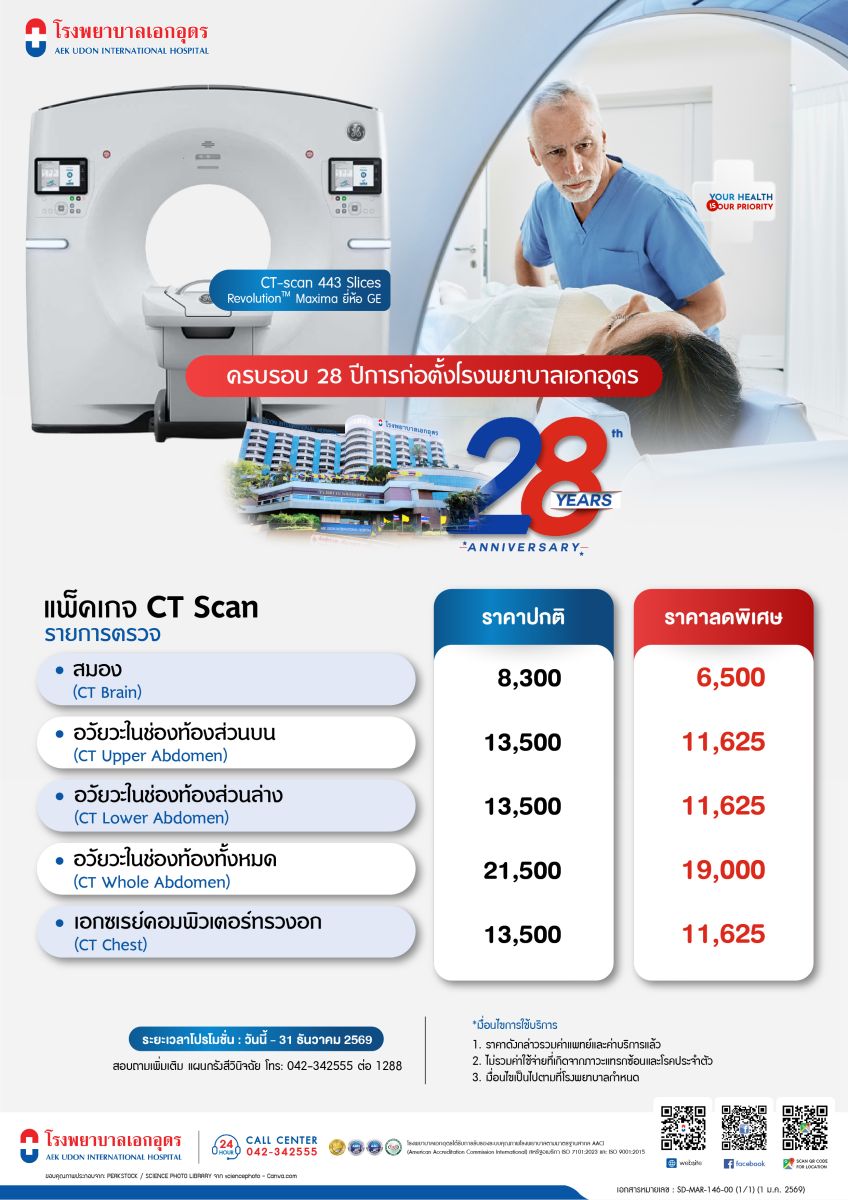แพ็คเกจ CT Scan ครบรอบ 28 ปีการก่อตั้งโรงพยาบาลเอกอุดร